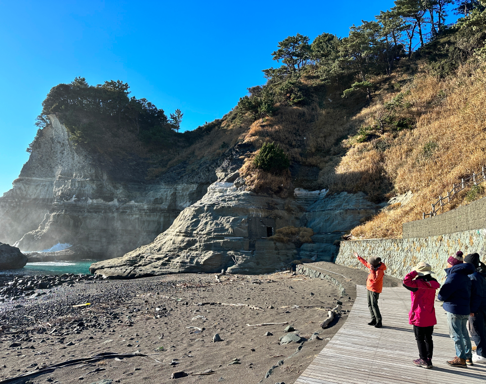 西伊豆のジオポイント(価値のある地形や地質)の成り立ちや見方を案内しながらトレッキング体験ができます。堂ヶ島から枯野公園の太古の海底火山の痕跡を巡るコース、西海岸の絶景・燈明ヶ崎を奇岩の浮島海岸まで歩くコースなど、約180分程度のコースがあります。2名~10名まで、1週間前までにご予約ください(少雨決行 / 荒天中止)。